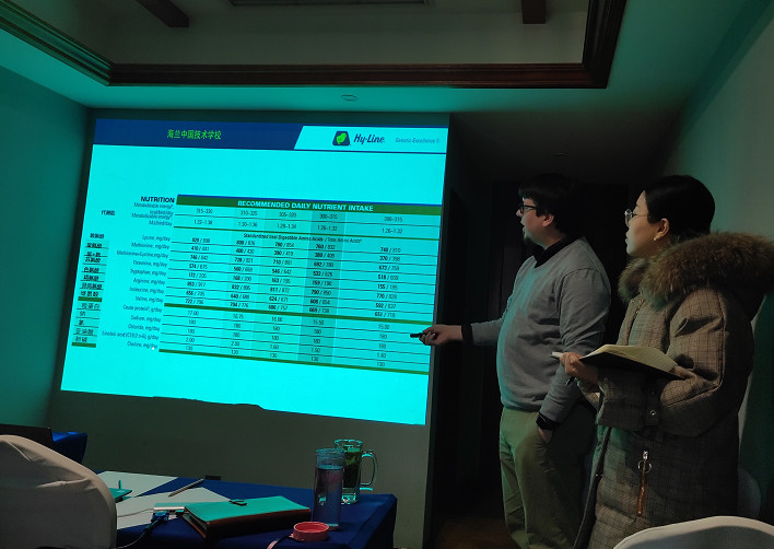 交流会上、Vitor Arantes先生对“海兰蛋鸡各阶段营养需求”及“如何提高饲料转化率”等方面进行了讲解汇报,同时,就饲养管理及技术问题进行了深入的探讨交流,双方皆获益良多。