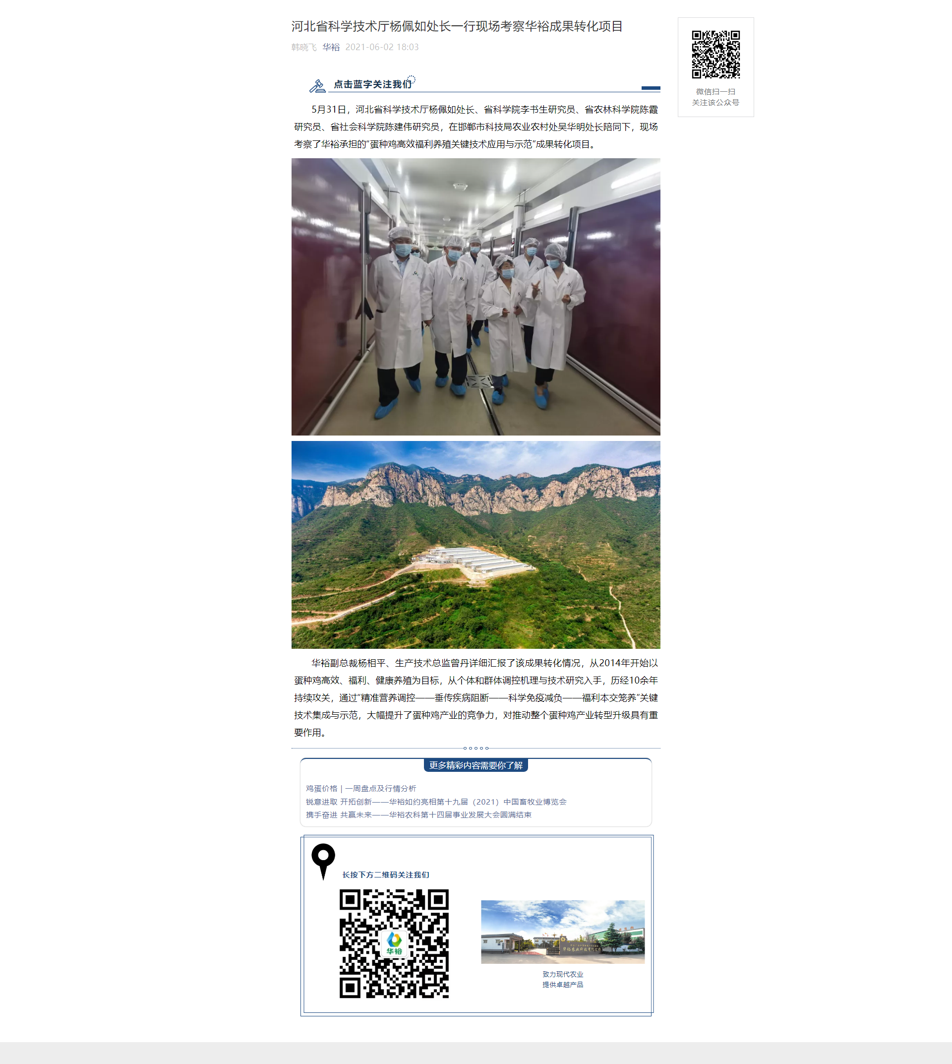 河北省科学技术厅杨佩如处长一行现场考察华裕成果转化项目