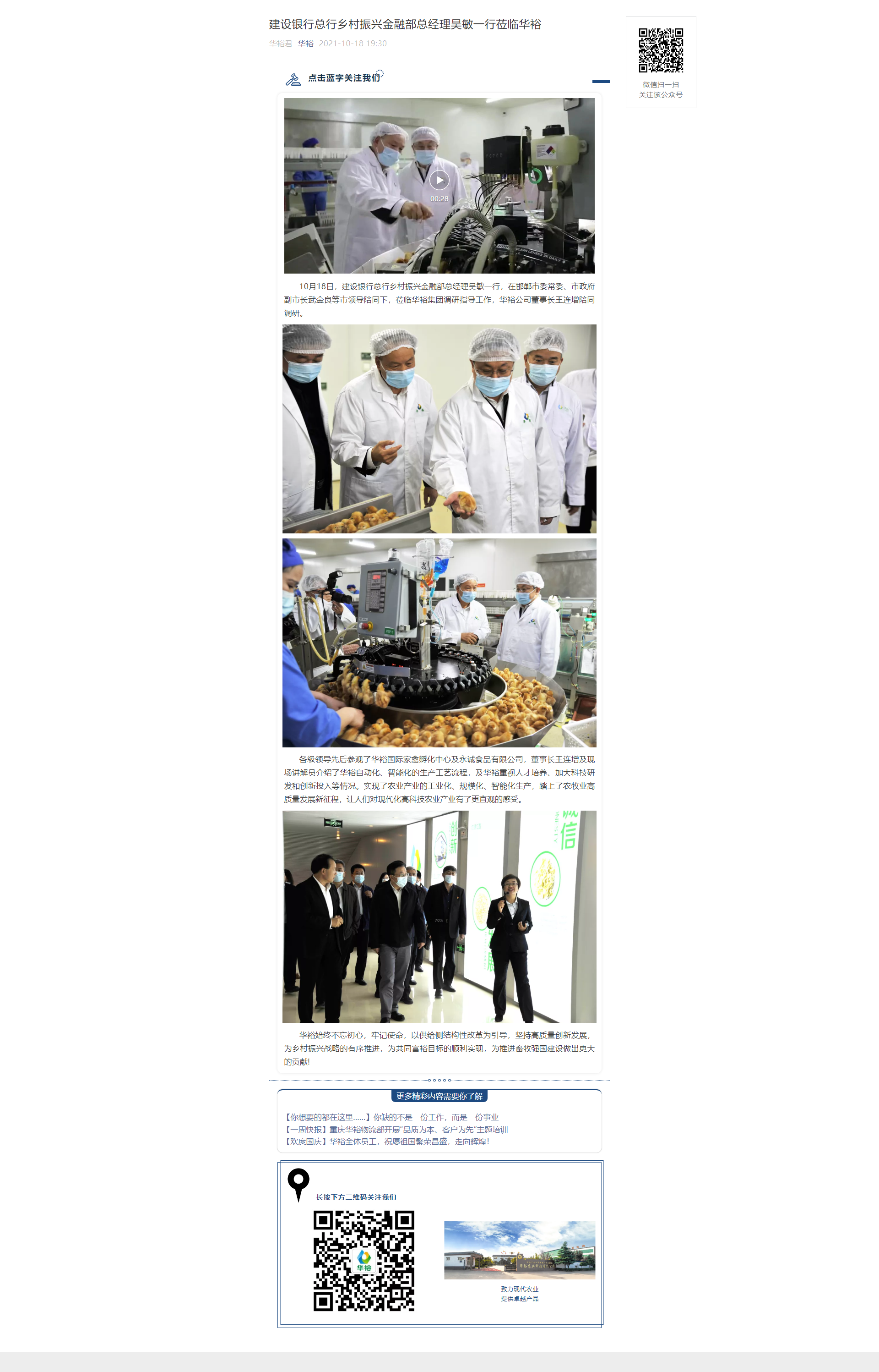 建设银行总行乡村振兴金融部总经理吴敏一行莅临华裕