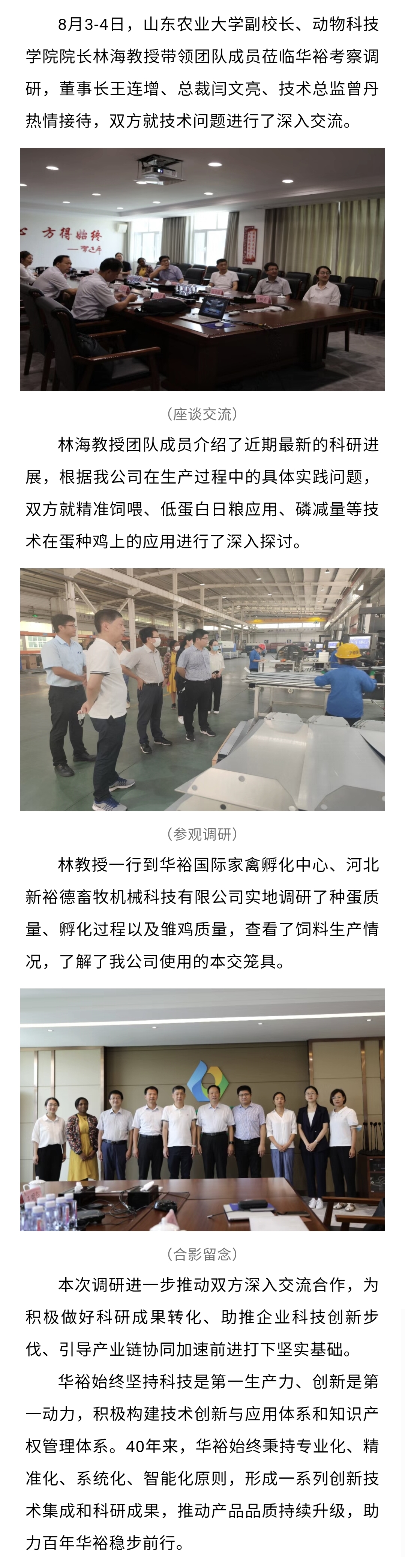 山东农业大学副校长、动物科技学院院长林海教授一行莅临华裕考察调研