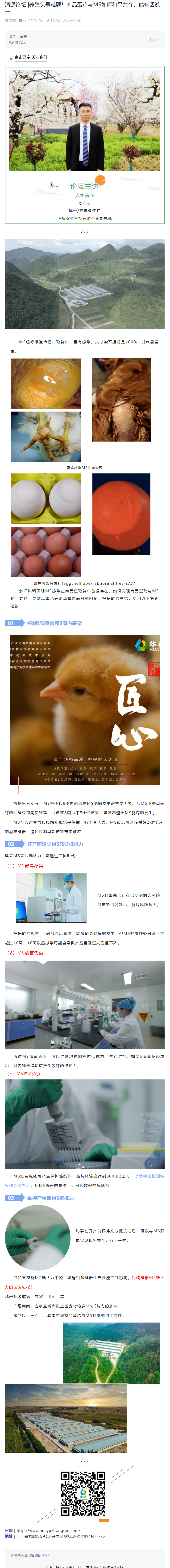 清源论坛||养殖头号难题!商品蛋鸡与MS如何和平共存,他有话说→