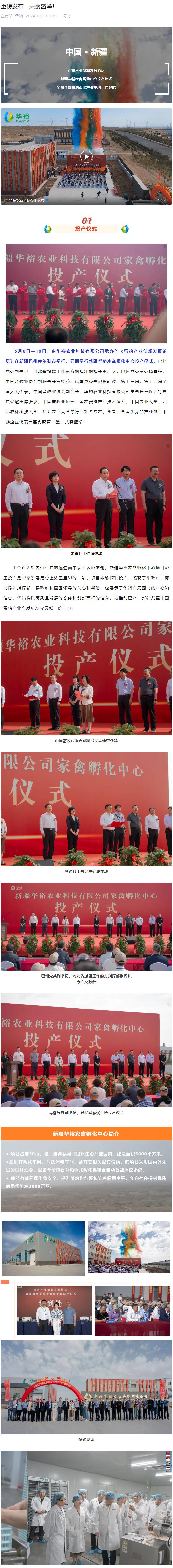 新疆华裕家禽孵化中心正式投产