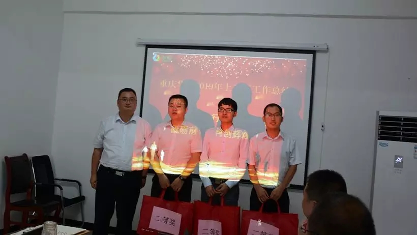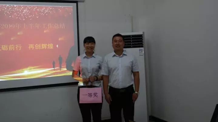 汇报完毕后,由参会人员匿名评选出汇报最好的前四名,由总经理代进为一等奖获得者颁发礼品,公司行政副总张海波为二等奖获得者颁奖,会议圆满落幕。