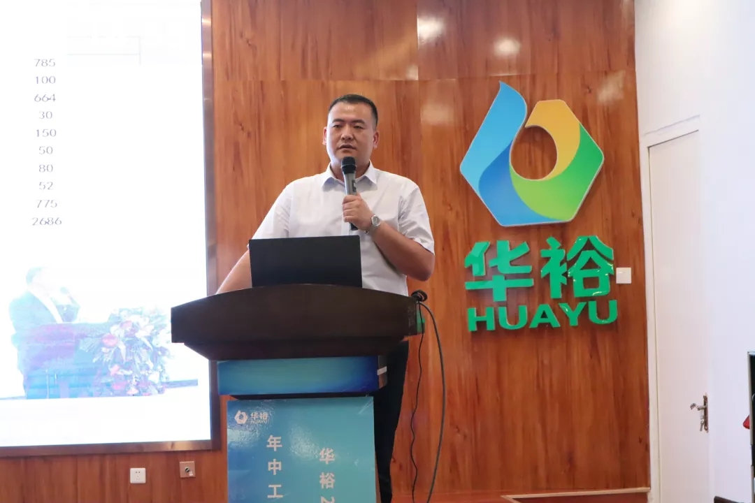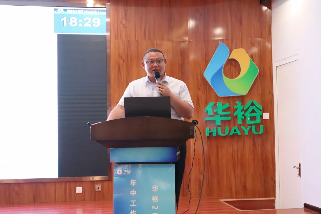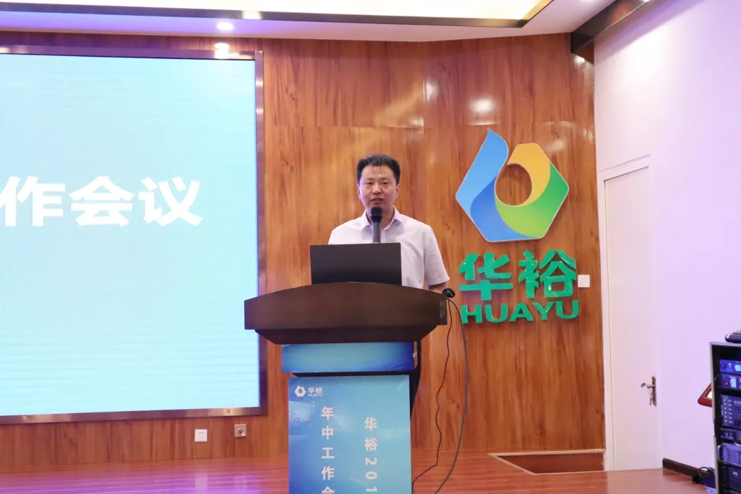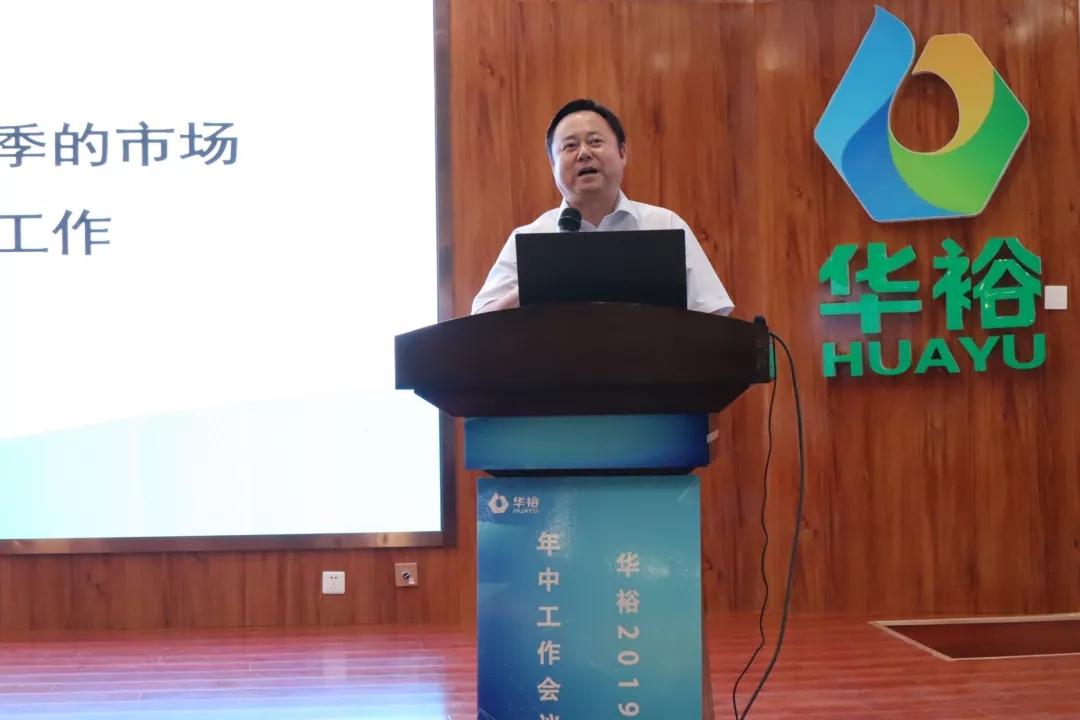 总裁闫文亮主持会议,代表公司从市场、管理、制度、科技、人才等方面全面总结了华裕2019上半年的各项工作,并在此基础上,对2019年下半年的工作进行安排部署。