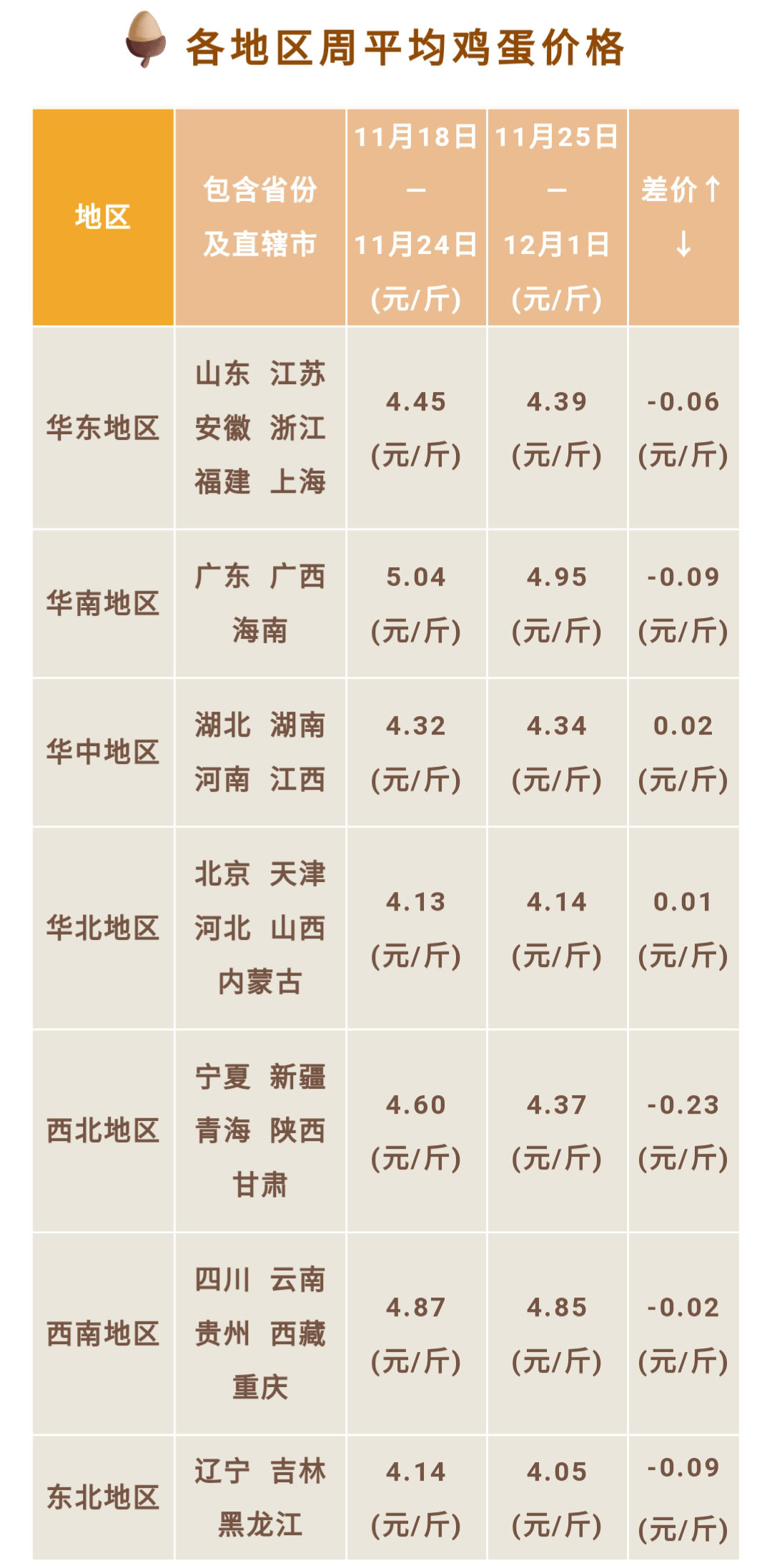 鸡蛋价格 | 截止12月1日各地区周平均鸡蛋价格及行情分析