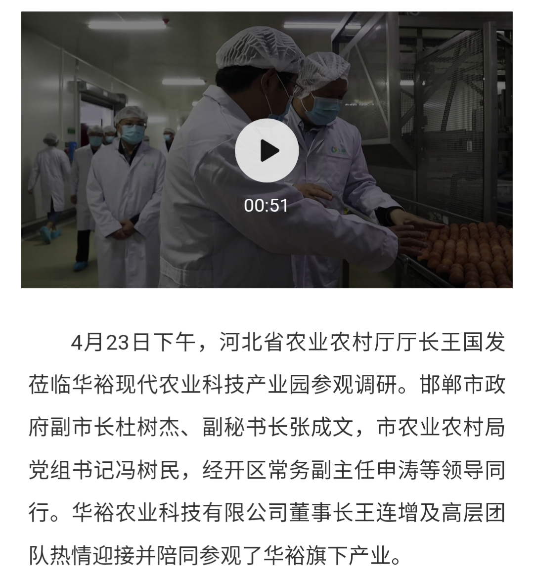 河北省农业农村厅厅长王国发莅临华裕参观调研