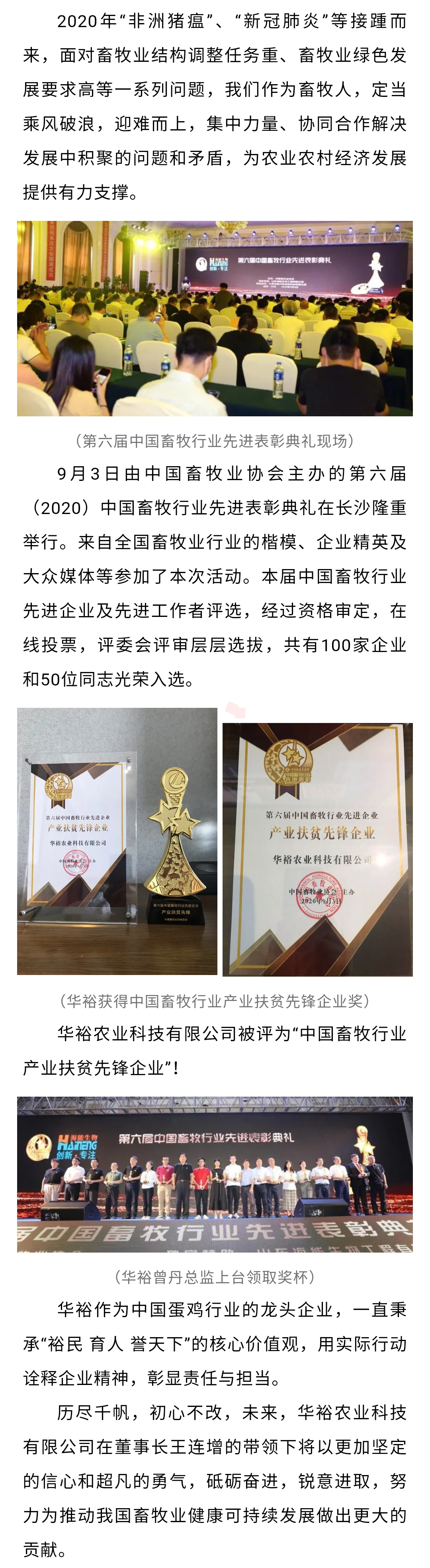 热烈祝贺盈球官网获得“第六届中国畜牧行业先进企业”荣誉称号