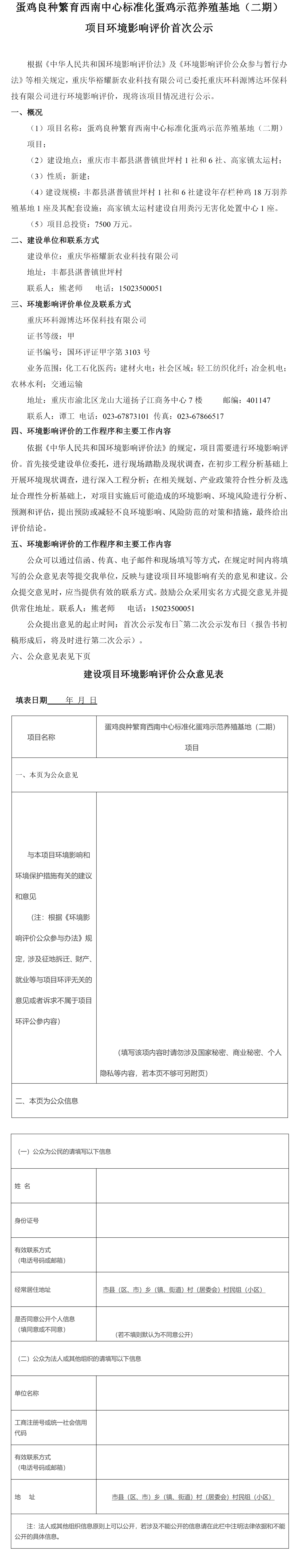 蛋鸡良种繁育西南中心标准化蛋鸡示范养殖基地(二期) 项目环境影响评价首次公示