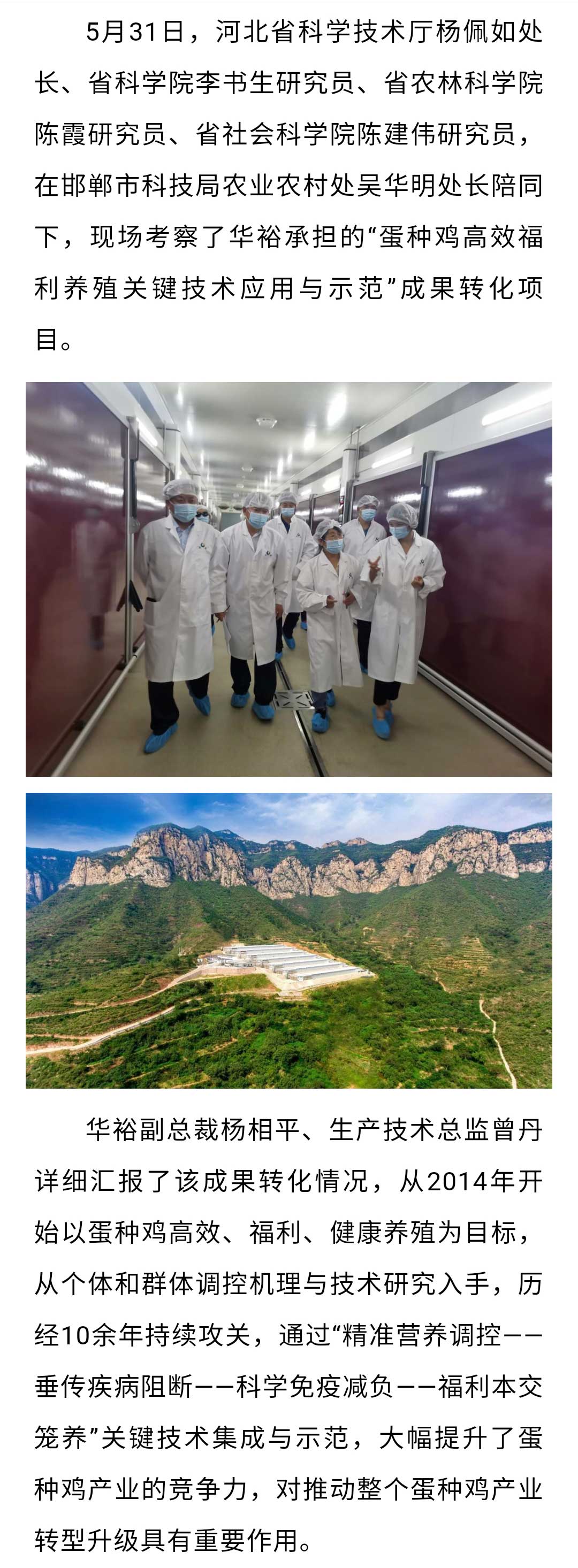 河北省科学技术厅杨佩如处长一行现场考察华裕成果转化项目