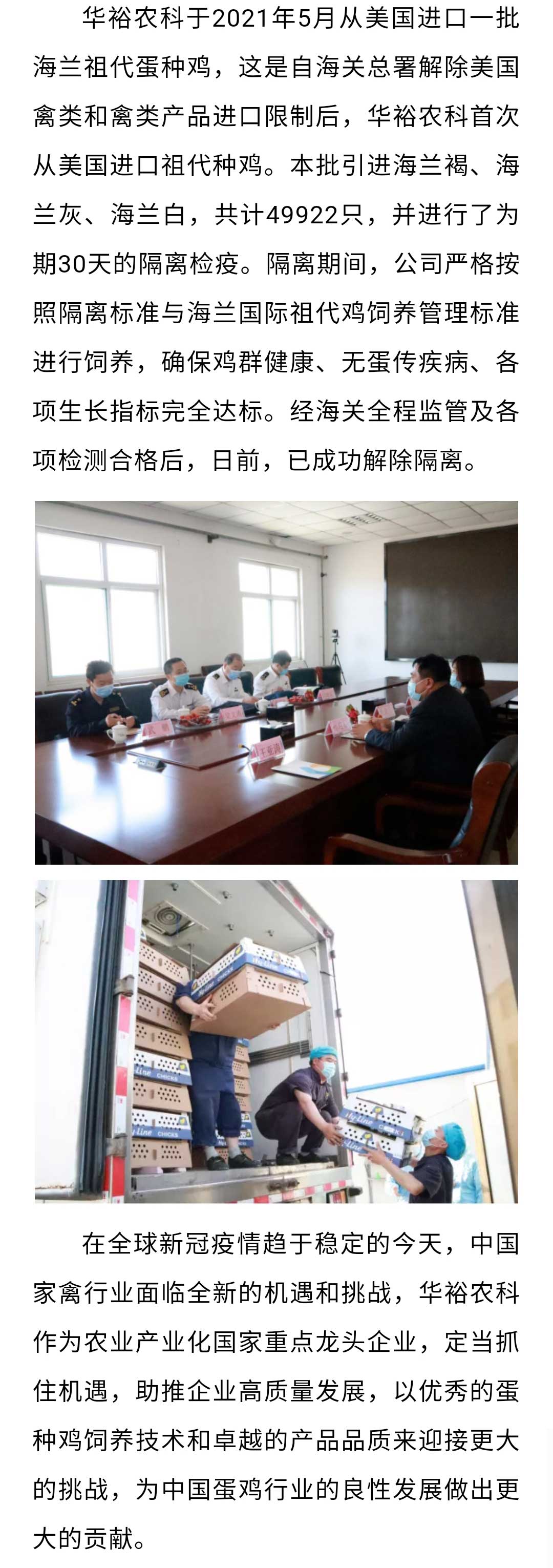 【祖代鸡引进】华裕农科成功从美国引进海兰祖代蛋种鸡