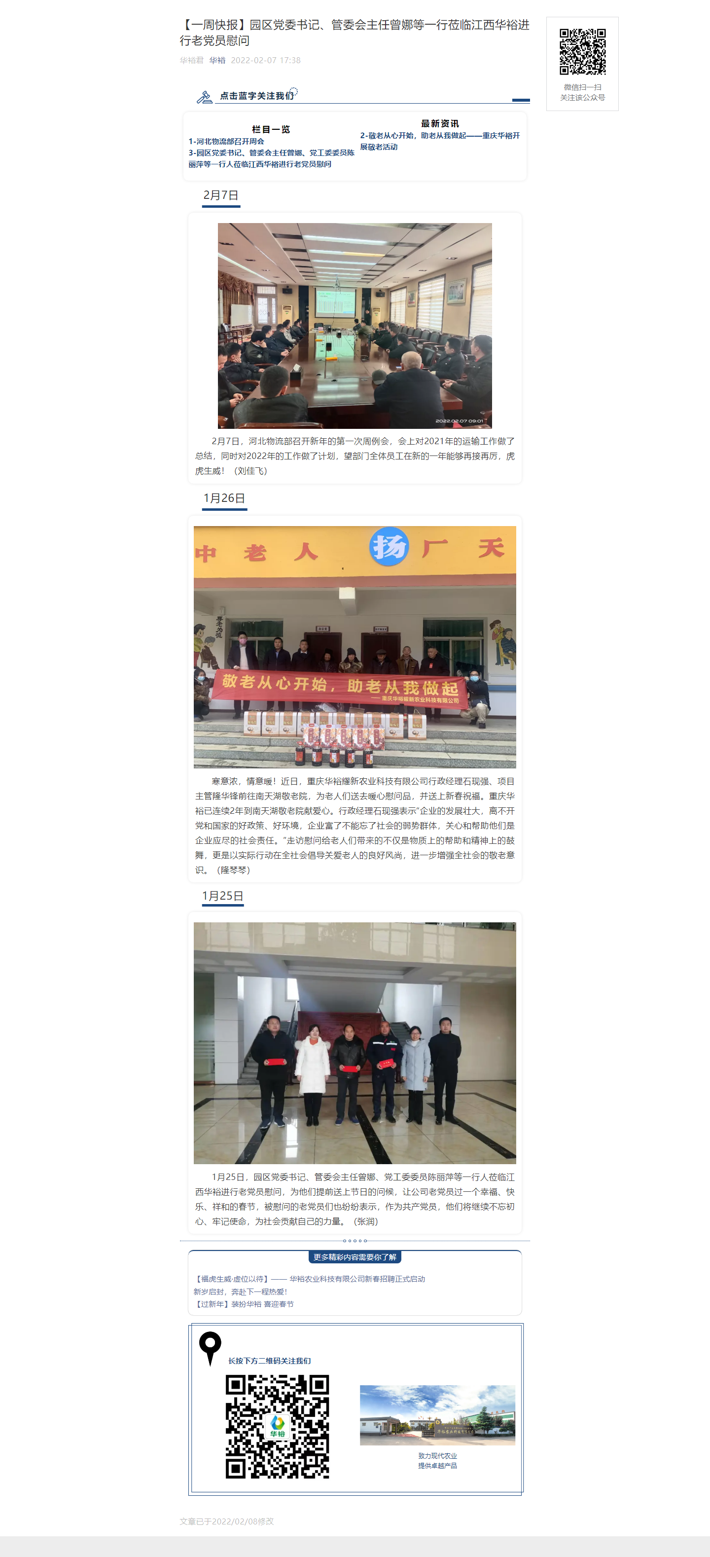 【一周快报】园区党委书记、管委会主任曾娜等一行莅临江西华裕进行老党员慰问