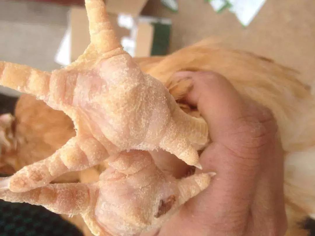 外观症状:生长缓慢,食欲不振,有跛行症状。病鸡精神萎靡,体型较小,大部分鸡关节和脚垫都肿胀,明显跛行。严重的不能站立。排白色或绿色水样便。