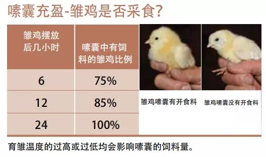 雏鸡前三天的体质发育更是直接影响全程的死淘率和生产性能发挥的根基,相比一日龄嗉囊充盈率更是让雏鸡第一时间活下来、不掉队、感到舒适的具体表现。所以放鸡后定时检测嗉囊充盈率是至关重要的。若不达要求,请及时查出原因尽快采取补救措施,尽可能把鸡群生长和死淘上的损失降到最低。