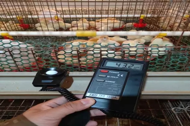 A鸡舍提前预温要到位,笼底部或垫料上是暖和的能保持30-35℃相对温度范围,空气相对湿度可达60%-70%,放鸡后不出现高温热应激的局部区域,也不出现温度低鸡群扎堆或缩脖子现象。鸡群表现是舒适的,温湿度控制是平稳的。