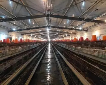 C饲养密度符合品种要求,计算好每笼放多少鸡保持密度一致性,鸡不能串笼,避免跑鸡和笼内卡鸡现象,垫料是舒适的小孔垫网或厚的垫纸,用垫纸保证不被水打湿。