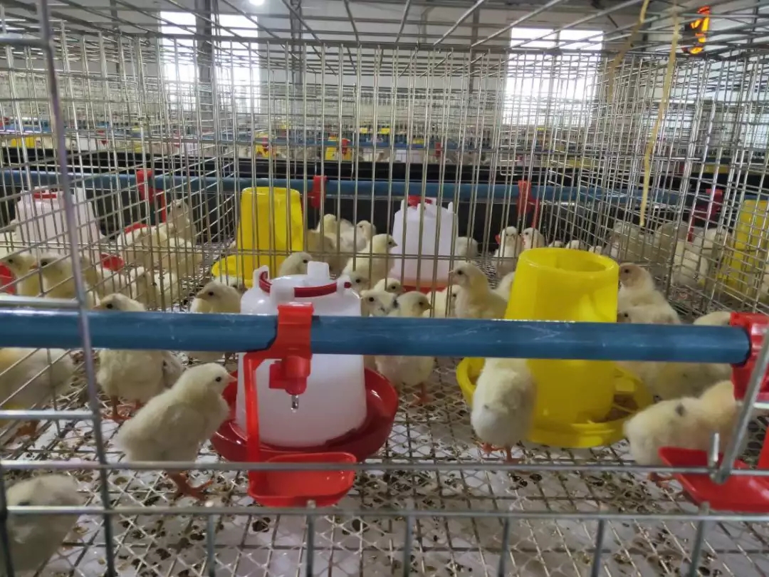 合理的饲养密度,每平米笼底面积60只鸡,没有跑鸡没有卡鸡没有串笼鸡情况,提供充足的水位料位,保证饮水充足,供料充足,是保证您接的雏鸡一日龄嗉囊充盈率达标的基本保障,值得各位育雏人员去关注去检测。