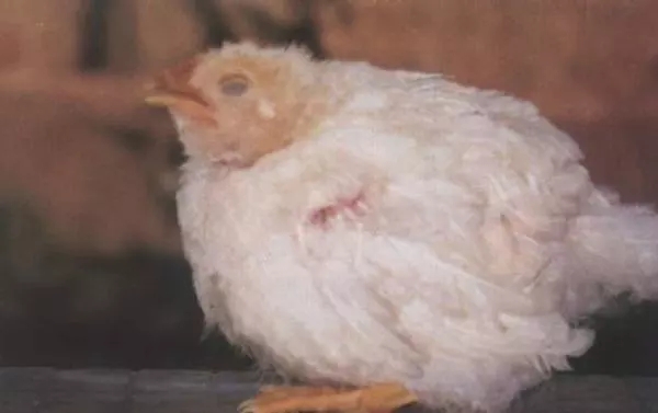 它主要侵害2-5周龄的鸡,2周龄以内的雏鸡也可能病。病鸡表现明显的精神沉郁,闭眼嗜睡,食欲减退,腹泻以及羽毛粗乱无光易折断。病鸡生长发育受阻,排黑色、灰色稀便,有时混有血液。与小肠球虫病并发时,粪便稍稀呈柿黄色或间有肉样粪便。病程稍长,有的出现神经症状。病鸡翅腿麻痹、颤动、站立不起、瘫痪、双翅拍地,触摸时发出尖叫声。
